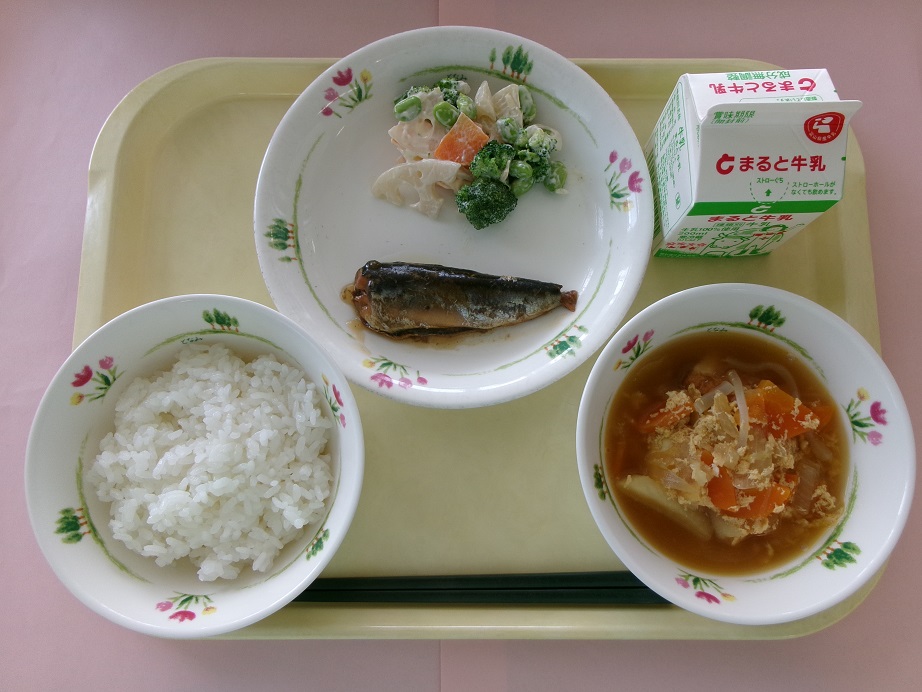 今日の給食のように、ビタミンやミネラル、食物繊維が含まれるあえ物や、いも類の煮物と組み合わせると、栄養バランスがよくなります。