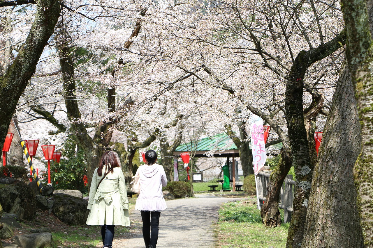 市の花木であり、日本海側での自生はめずらしいエドヒガンザクラをはじめ、ソメイヨシノなど、18種類の桜が咲き誇ります。