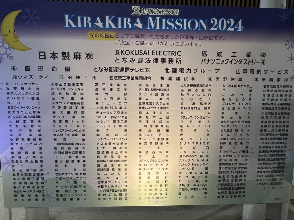 「砺波をもっと盛り上げたい!」「もっとキラキラしたイルミネーションにしたい!」という方、ぜひ協賛金へのご協力をお願いします。