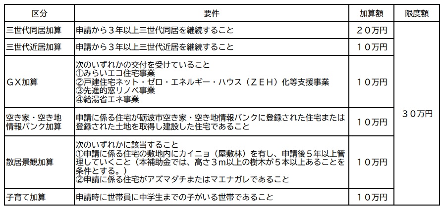 □砺波市定住促進空き家利活用補助金および砺波市三世代同居・近居住宅支援事業補助金の交付を受けていないこと