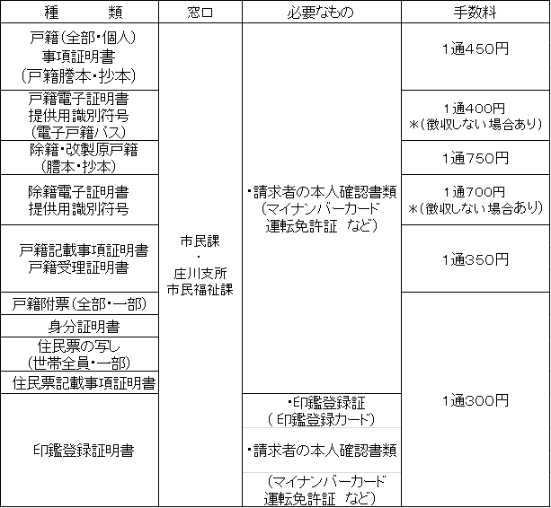 戸籍等各種証明書の発行手続きについて